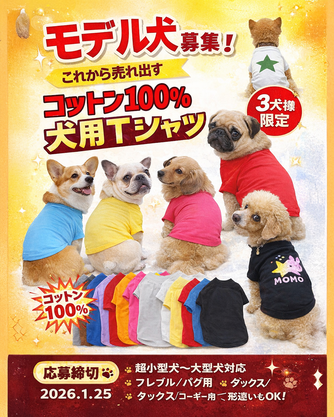 1/25まで インスタグラムで犬用のTシャツ着てくれるモデル犬募集中でっせー 着てもらうTシャツはこちら うちの子にぴったりやんと思う方はインスタからご応募ください~! ワンズプリントのインスタはこちら この投稿をIns…